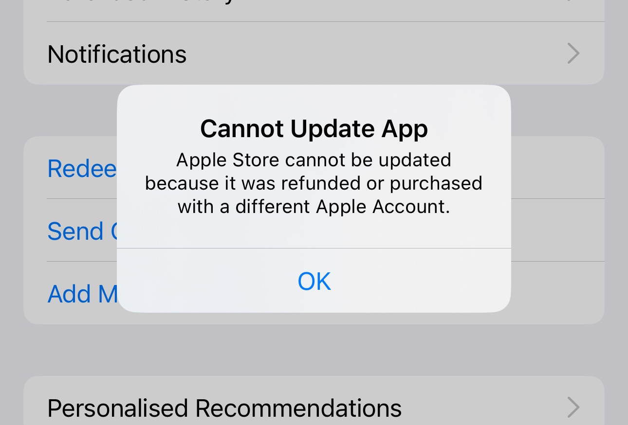 My appstore asks for my work appleID before it will update and i want to reinstall it in my personal Apple ID. I’ve deleted and reinstalled all the other apps linked to my work Apple ID to fix this for them but I cannot completely delete tha AppStore (if I do it only leaves the home screen but is obviously still on the phone). I’ve also tried logging out of the AppStore but when I login to update it using my personal appleID, it then reverts to asking me to provide my work appleID again. I do have that password but I want to completely separate my personal and work phones and Apple accounts which I have apart from the AppStore itself.