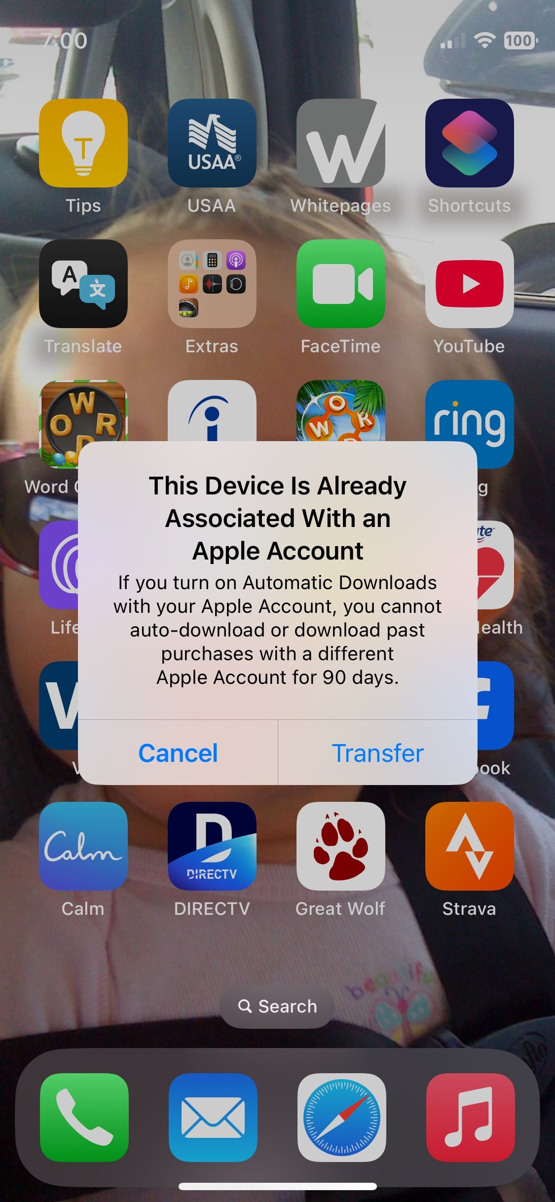 This keeps popping up on my Iphone 12 mini: "This Device Is Already Associated With an Apple Account"? I keep hitting (Cancel/Transfer) Cancel. What does it mean and or asking me to do? How do I fix it/stop it. I have 4 devices (3 Iphones and 1 Ipad) all on the same account.