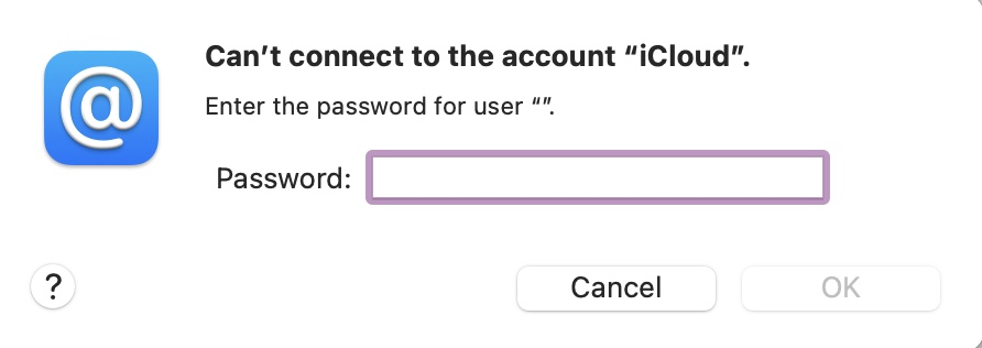 I have a popup window that says -Cannot connect to the account iCloud. Please enter the password for the user "". - macOS Sequoia 15.4.1 This does not happen on my iPhone.