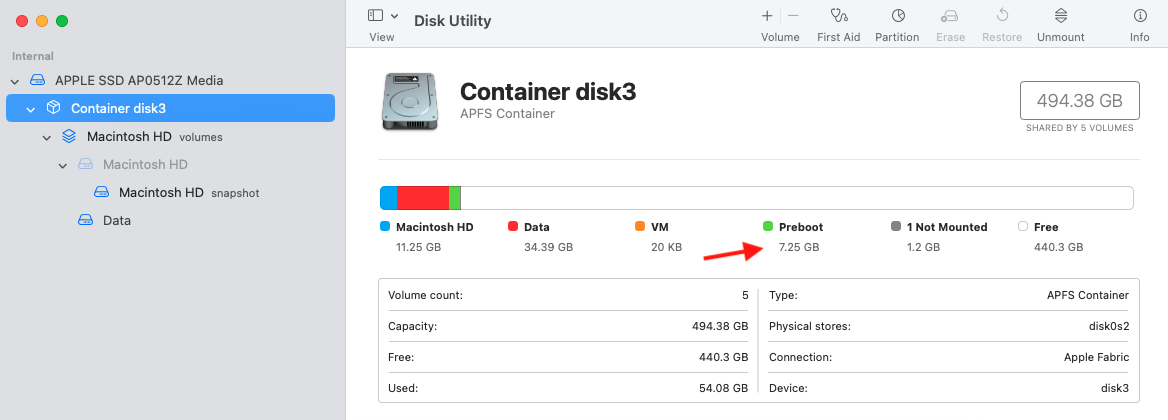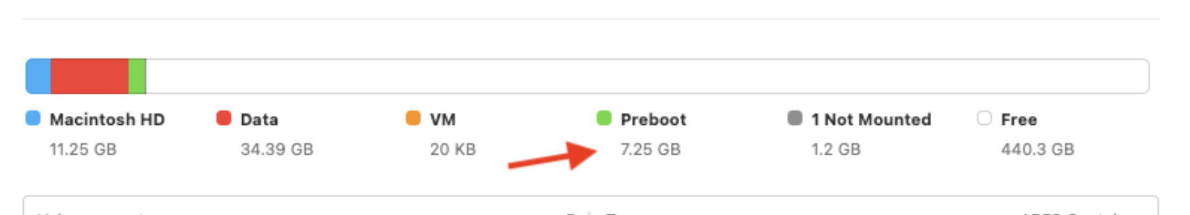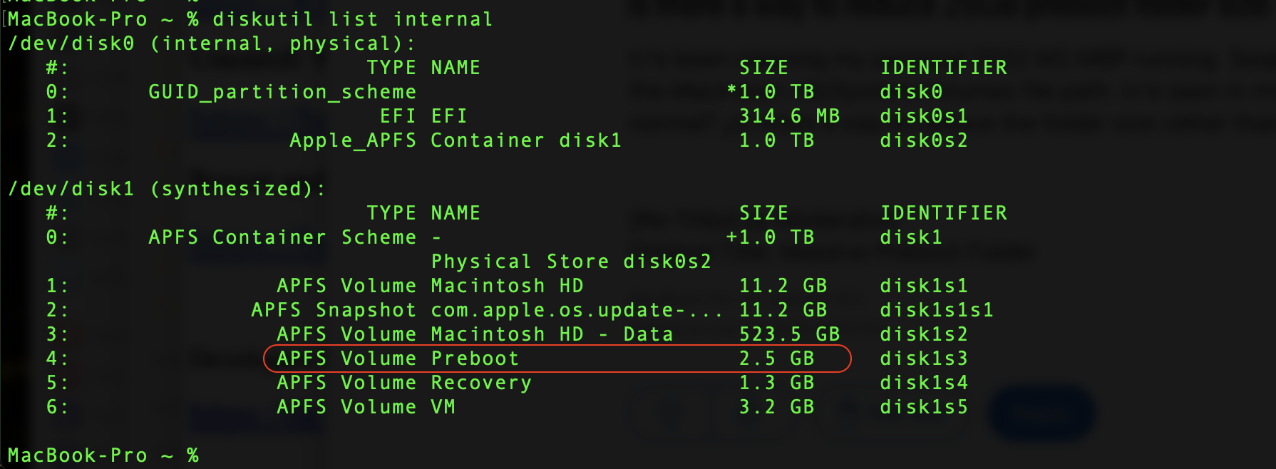 Is there a way to reduce 25GB preboot folder size in Macintosh HD/System/Volumes?