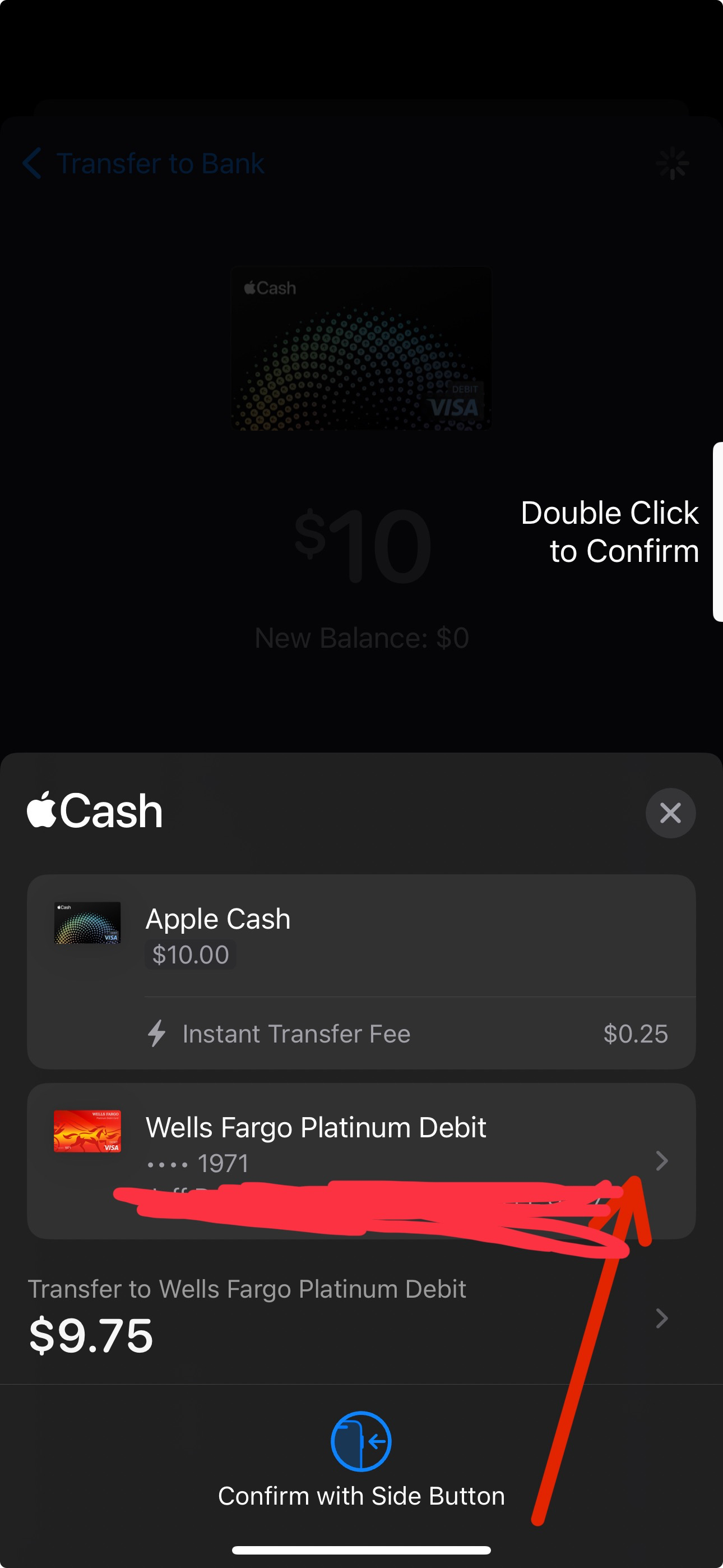 I want to transfer from Apple Pay using instant transfer but want to use a different debit card. How do I change it?