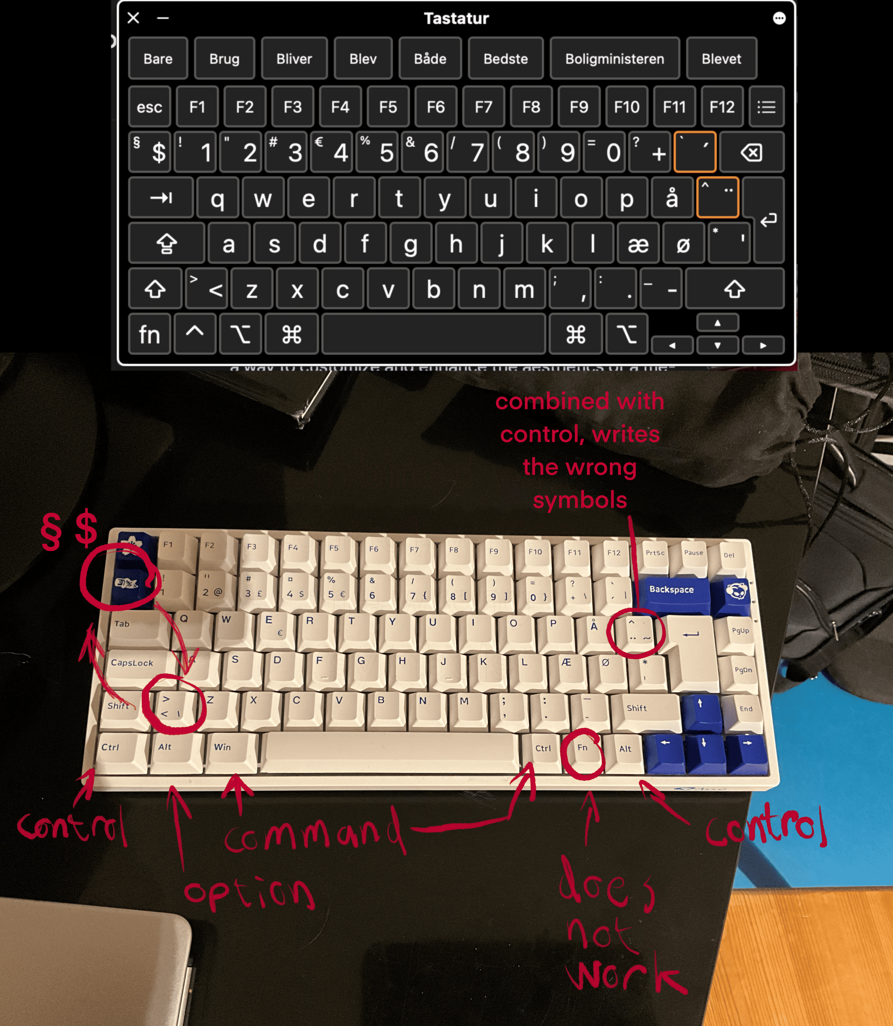 I'm trying to use my 3rd party keyboard with my M1Pro Macbook Pro running the latest version of IOS. I'm still somewhat of a new mac user. The keyboard is an Akko 3084b plus, with bluetooth. It is a windows layout keyboard, qwerty danish. As I'm using the device in danish, I should probably ask a dansih site, but I got redirected here, if there is a danish version of the community and you can redirect me there, I'd appreciate so and repost there.