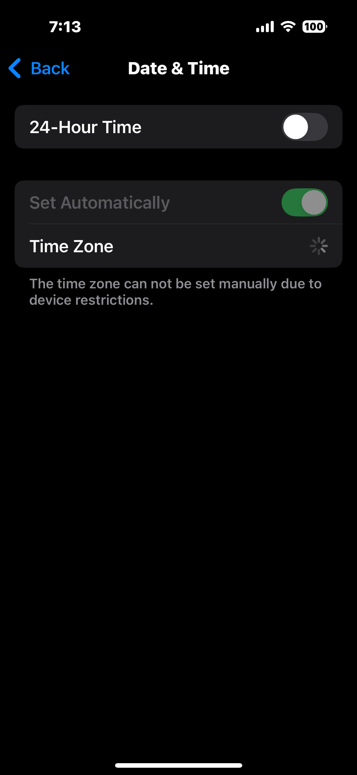 This has happened twice now. Phone changes time in the middle of the night (back an hour). I have gone to “Settings-Date and Time” to turn off “Set automatically” but am unable to because the “time zone” setting is spinning. Last time, I fixed it, but can’t remember how. Probably just powered the phone down and restarted. That’s fine to do if I’m awake but can’t do it in the midddle of the night if I’m sleeping and then wake up late.
