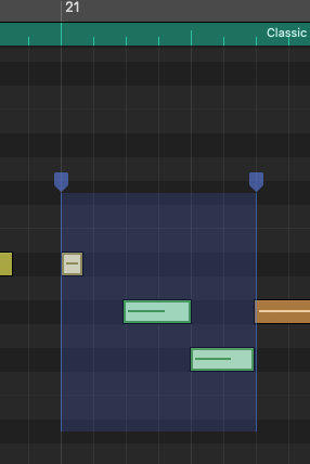 Since updating to 11.2.1 every time I highlight multiple midi notes in the editor window a blue region with "markers" on either side gets created. If I hover over either of the "handles" on top the cursor shows I can stretch or compress the highlighted notes. But this region - or whatever it's called - is mostly just in the way, for example, if I want to adjust note velocities. Can I turn off this feature?