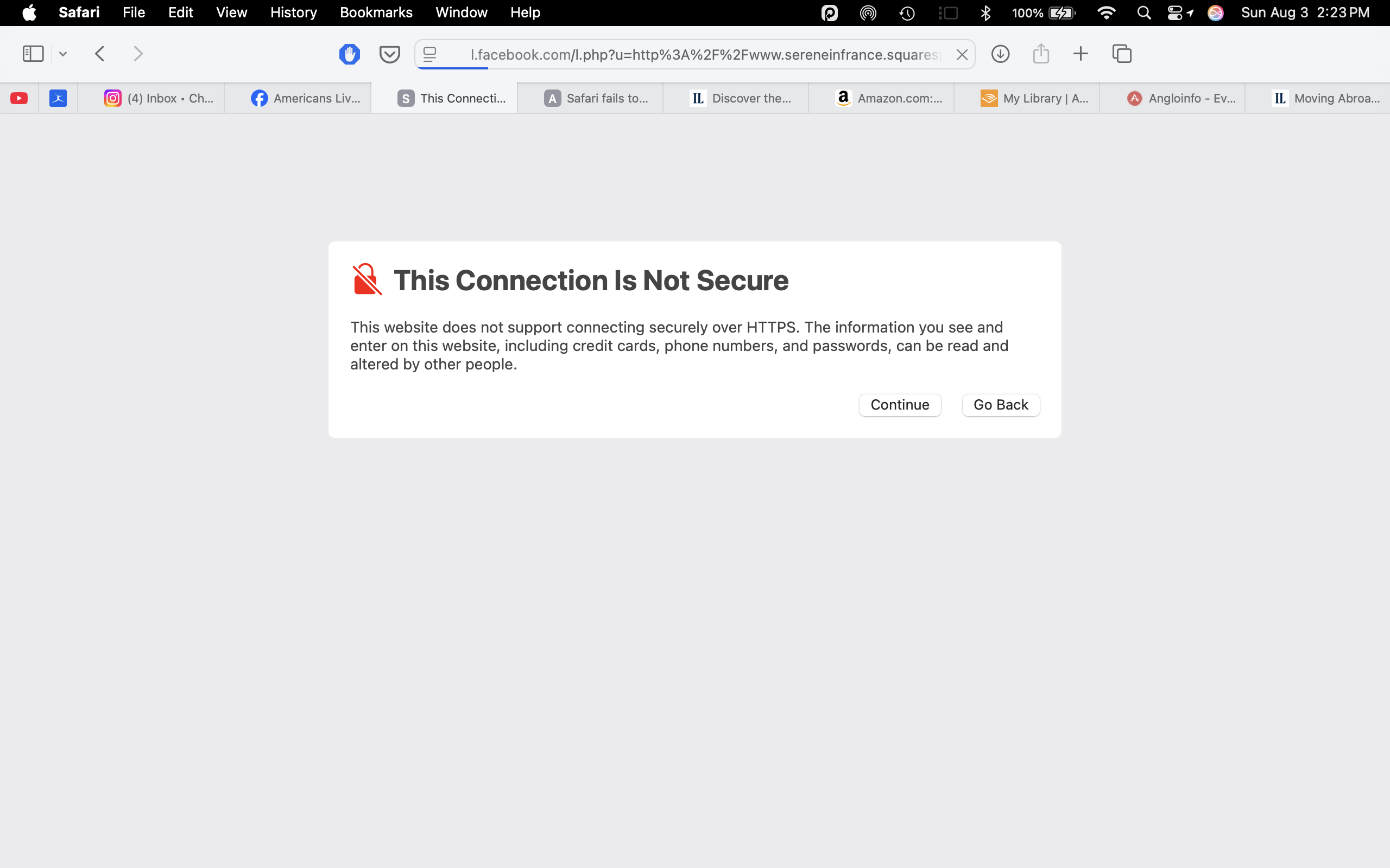 The Squarespace certificate associated with the webpage you were attempting to access is not trusted.