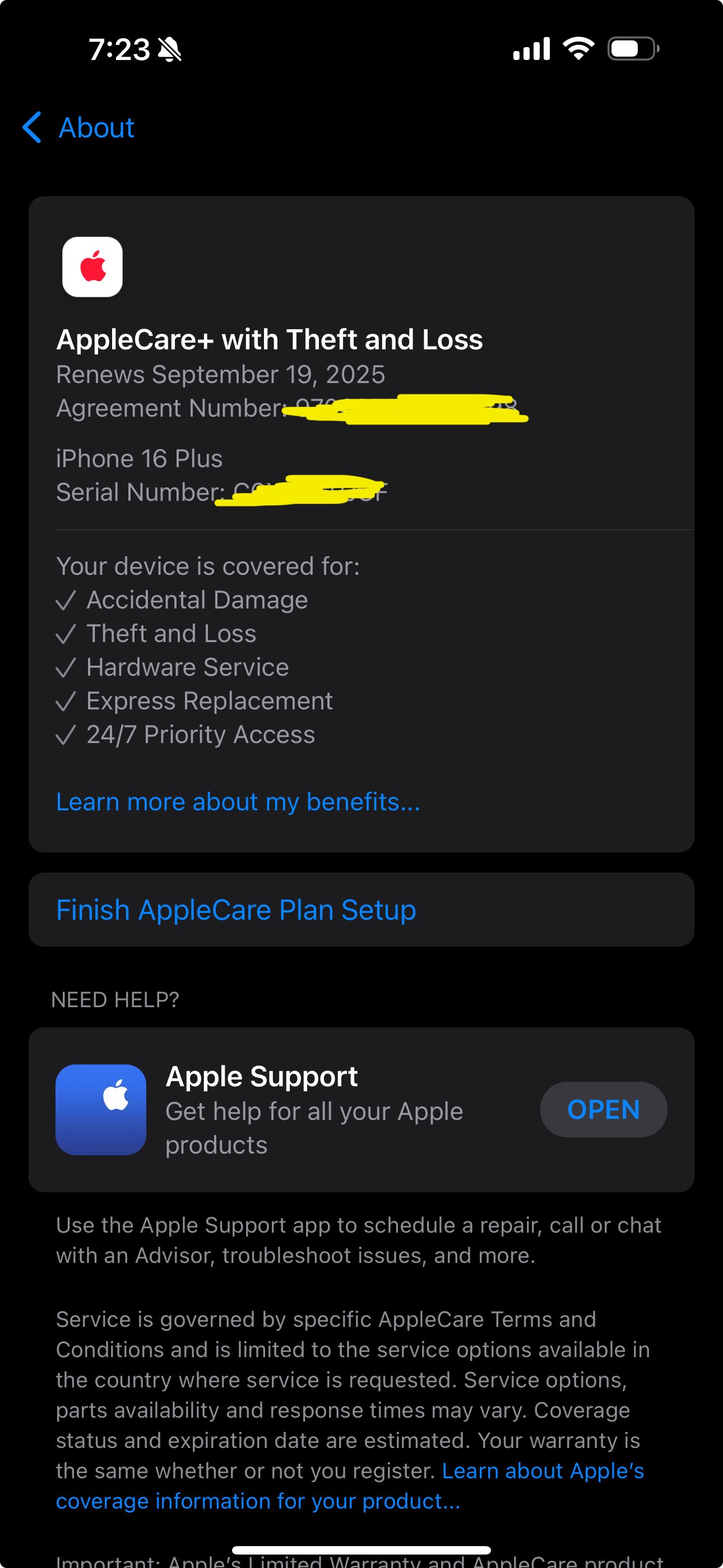 And if I click on "Finish AppleCare Plan Setup", this is all I get: