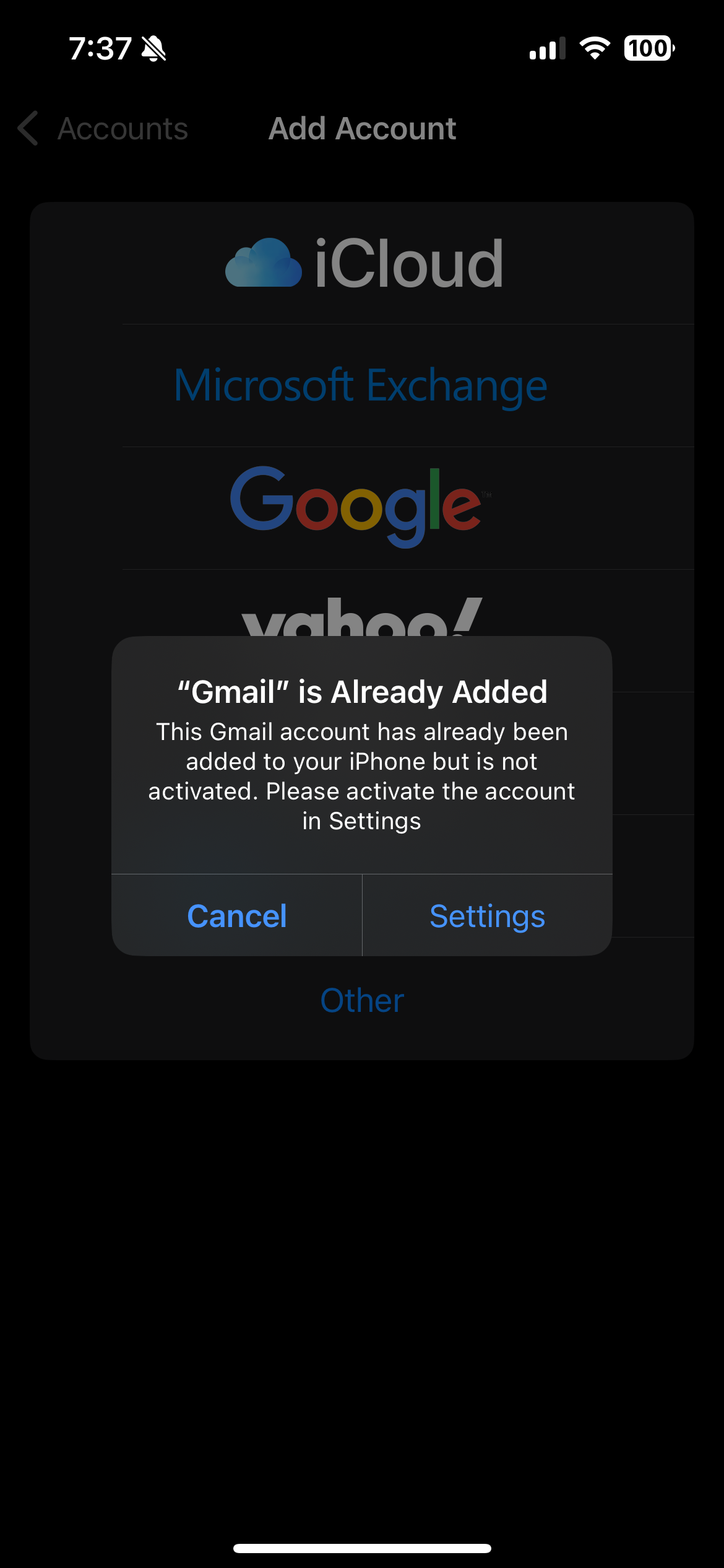 4) Delete my gmail account when I found it couldn't sync, but I am not able to add it now