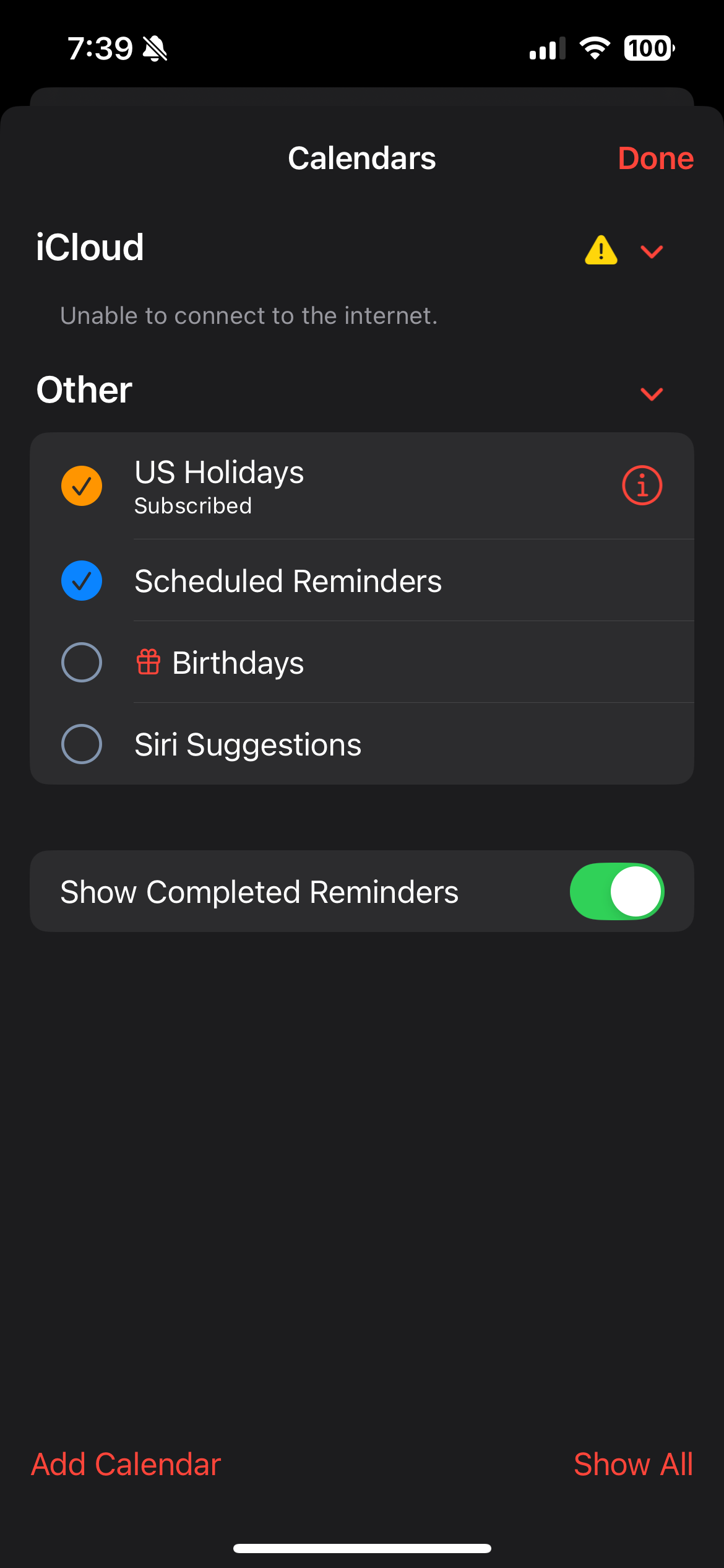iphone 16e Calender can't sync with any accounts: icloud, gmail....