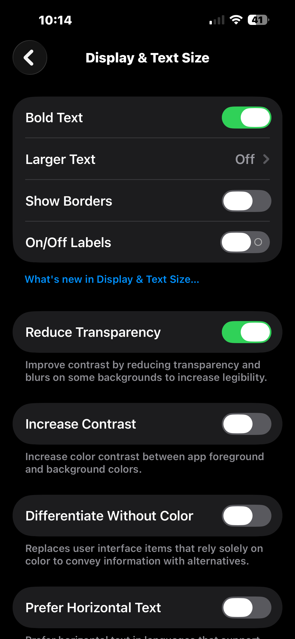 to fix that, you’ll want to go into your Settings and then head over to the “Accessibility” section. From there, you’ll find something like “Display & Text Size,” and you can look for an option called “Reduce Transparency.” If you turn that on, it should make those backgrounds more solid and get rid of that glassy look you don’t like.