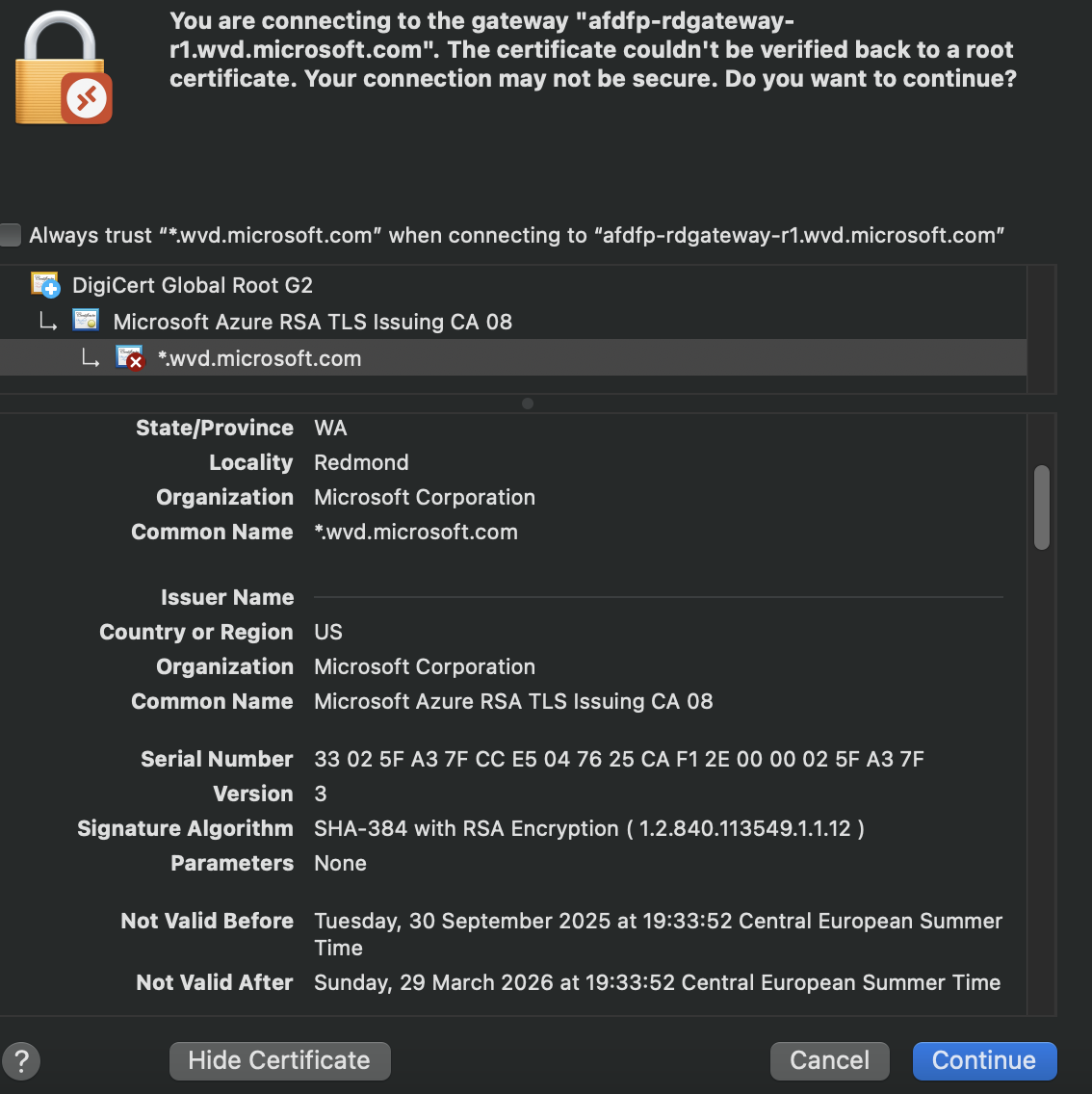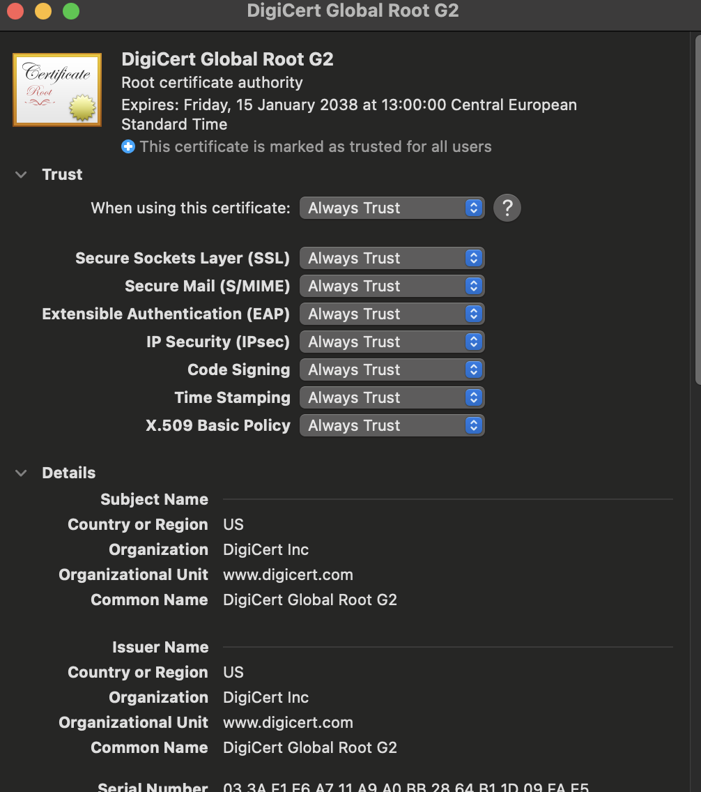So tried it with trusting the Digicert Root CA, but still the same error message.