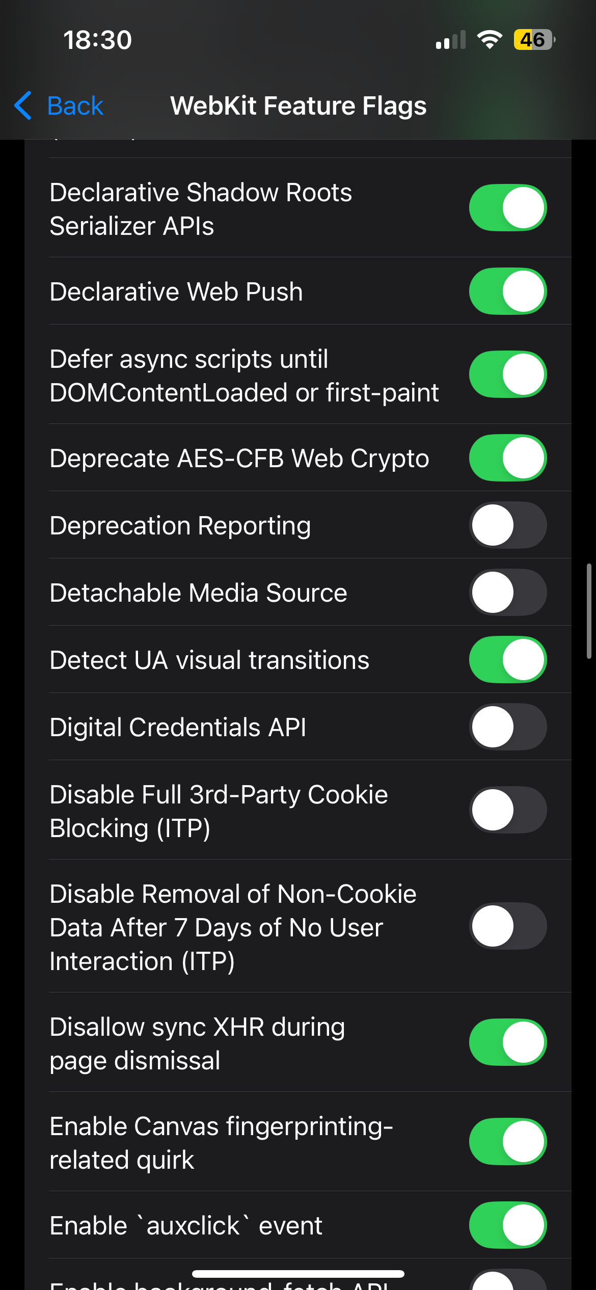 Which WebKit feature flags should I turn … - Apple Community