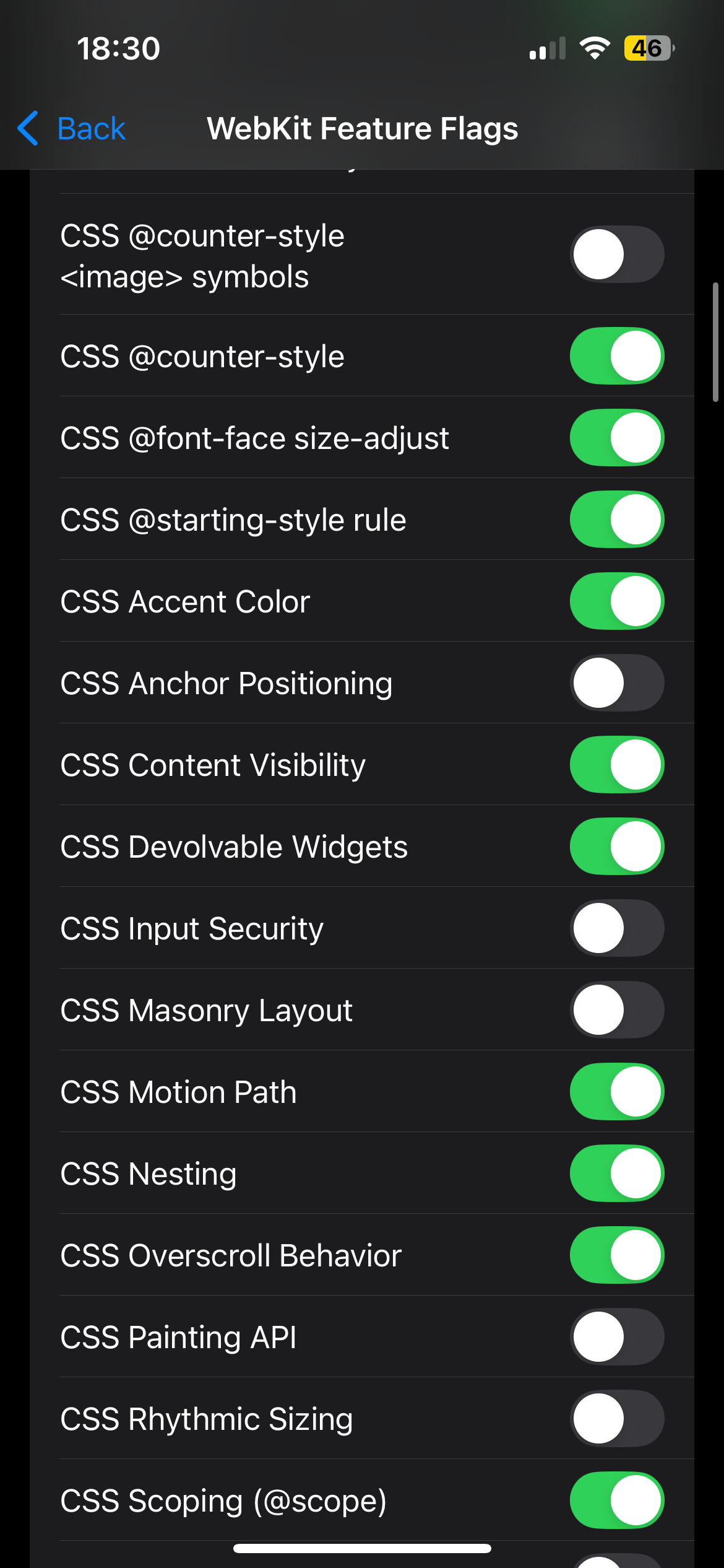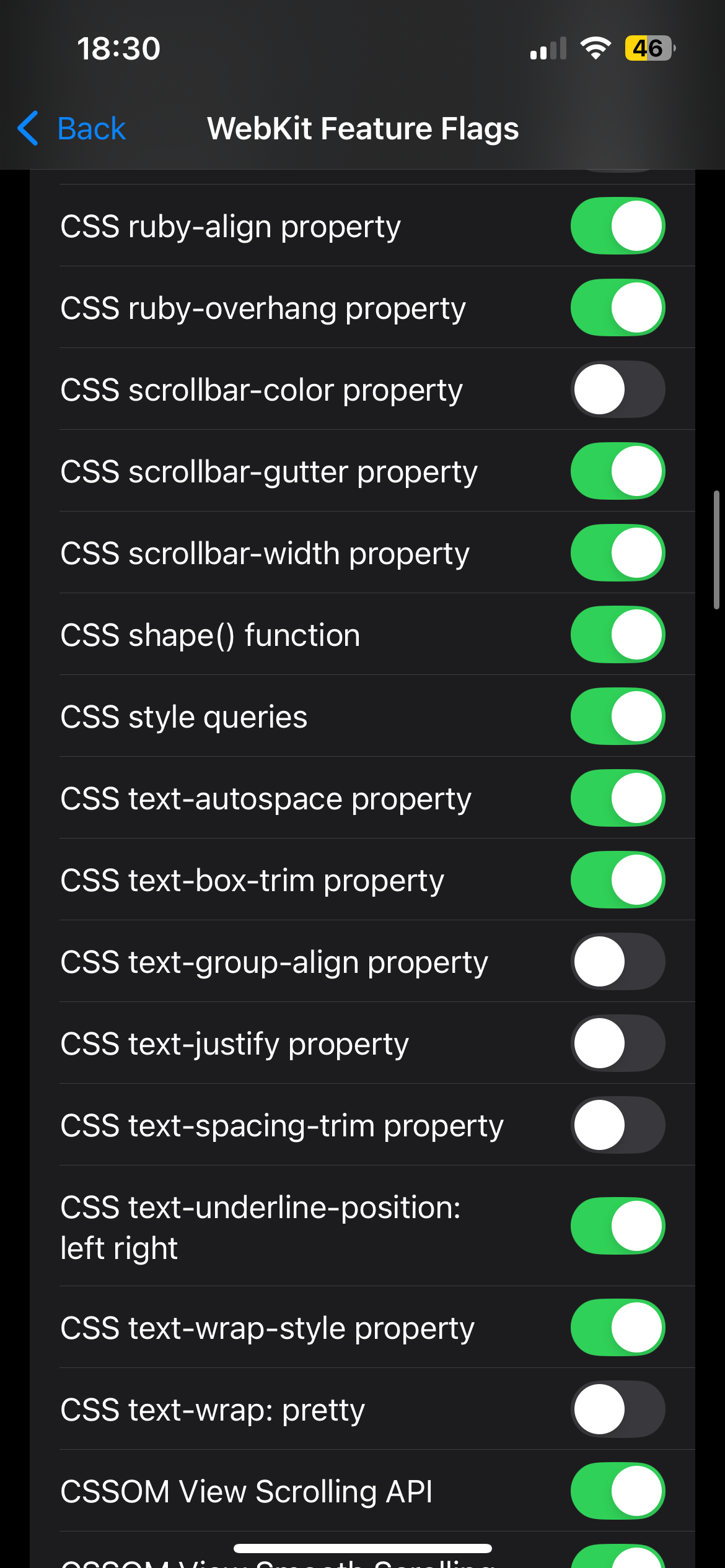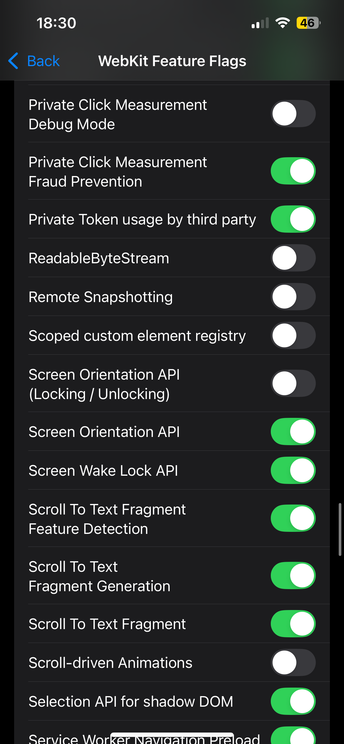 Safari WebKit Feature Flags