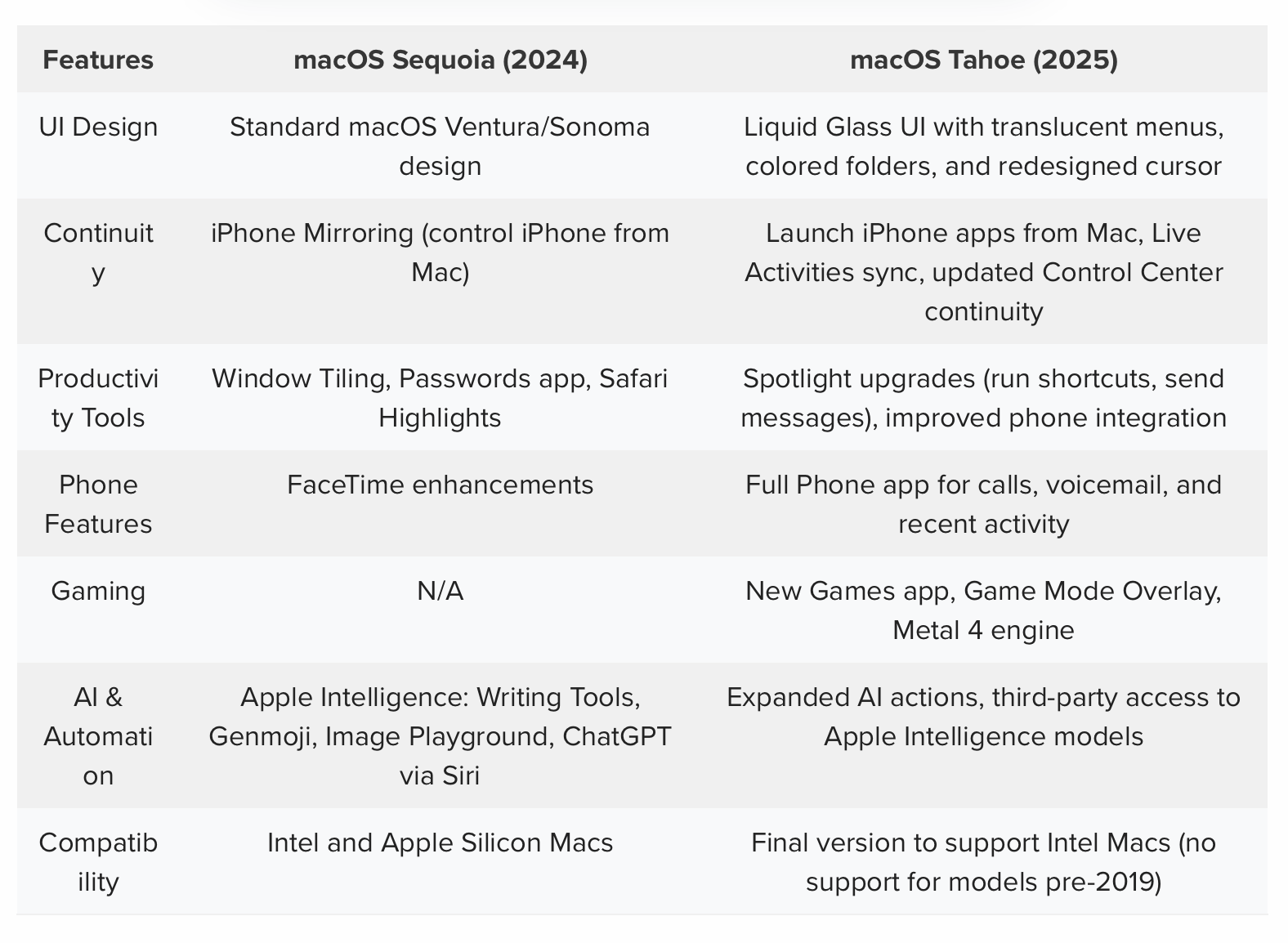 Here's a chart that compares the Tahoe and Sequoia system: (macobserver.com)