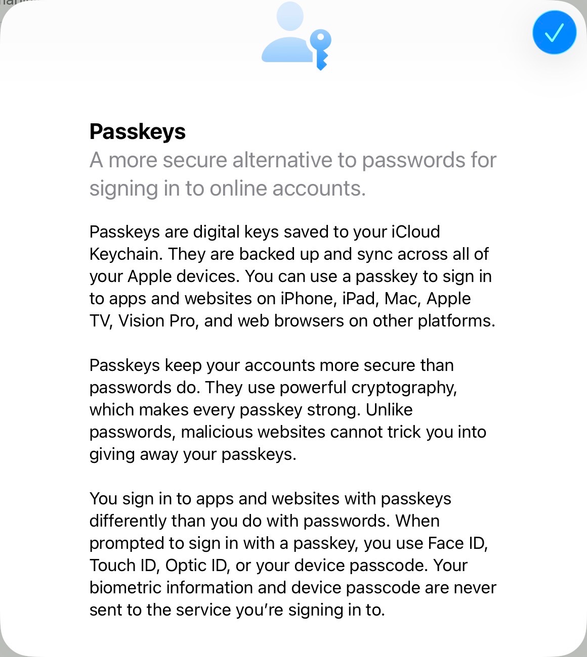 Does anyone know if changing a passkey takes place immediately across all of your Apple devices? I assume so but assuming isn't always a good idea.