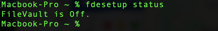 Checking The Status of FileVault—To check the status of file vault within Terminal.app type the following: