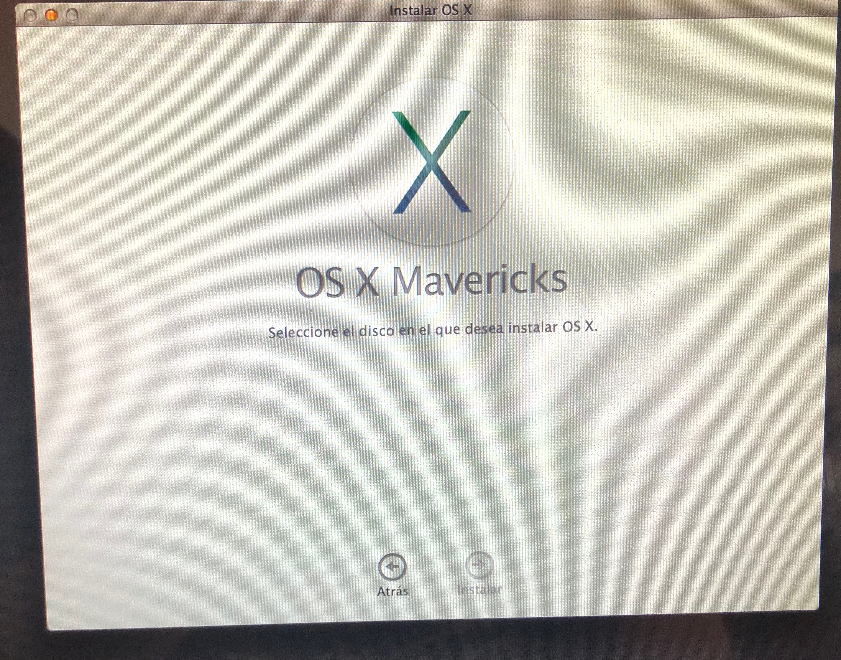 Hola!!! el mensaje que te está mostrando te indica que no tienes particiones activas para realizar la instalación debes crearlas manualmente, una consulta por casualidad has intentado la segunda opción que indica "reinstalar OS X" posiblemente esa opción te recree las particiones automáticamente caso contrario debes crearlas tal como se indica en el siguiente enlace