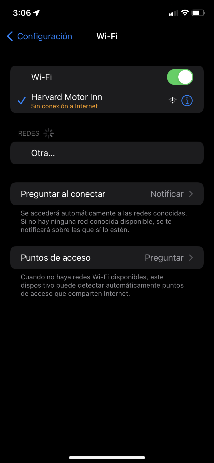 Estoy intentado vincular mi iPhone 11 a una red de wifi, uf normalmente pide usuario y contraseña. Pero al conectarla me dice que no tiene acceso a internet y no me aparece la ventana donde puedo inscribir el usuario y la contraseña