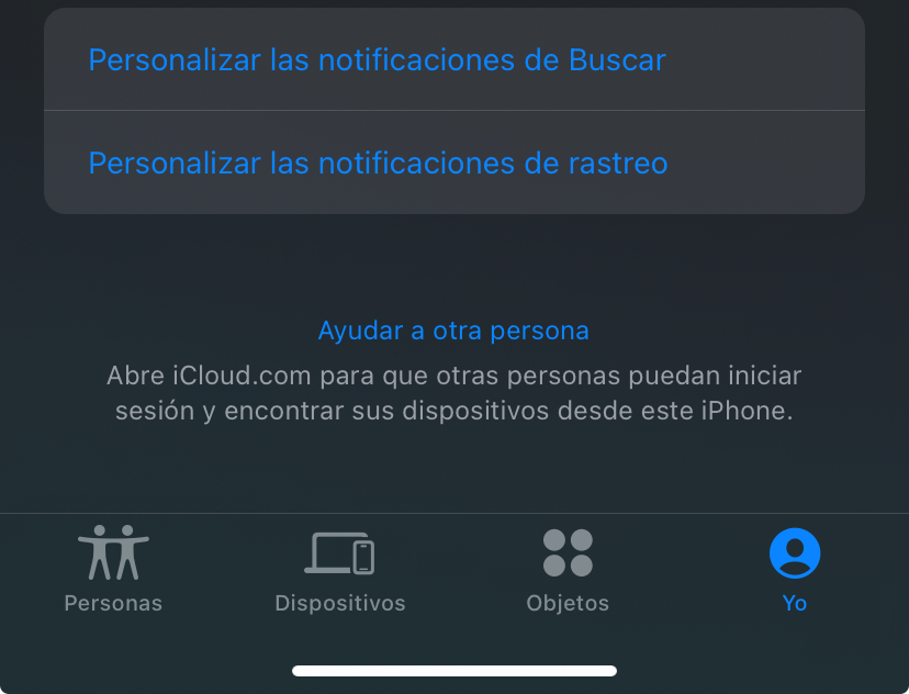 abres la aplicación buscar en otro dispositivo, seleccionas "YO" y deslizas hasta abajo de todo y te aparece la opción