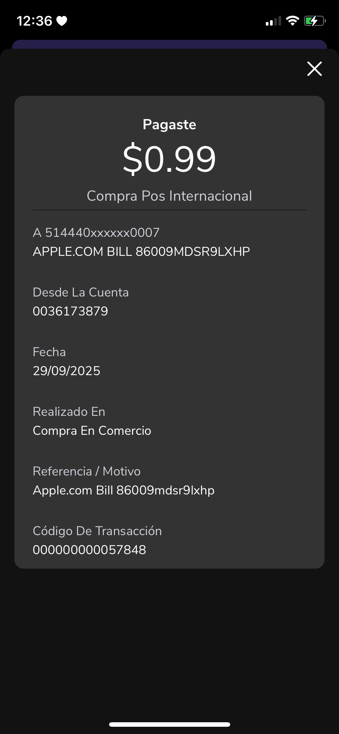 Cargo de $1 de Apple que desconozco
