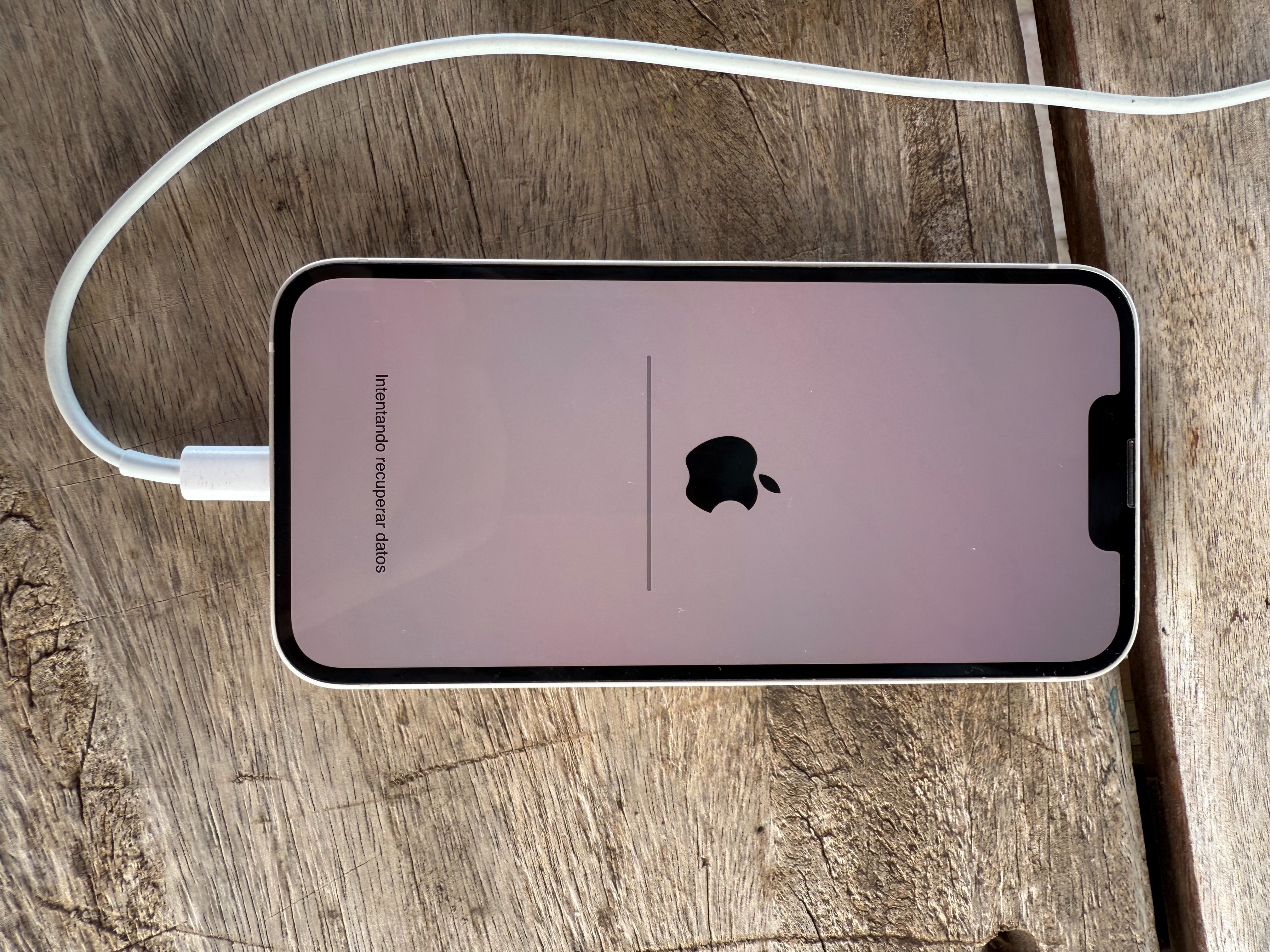 Pero luego de que se actualiza y se restablece me aparece una pantalla blanca que me dice "desliza hacia arriba para recuperar". Deslizo y tengo que poner un código que luego necesita ser verificado. Pongo mi antiguo código, lo verifico y se queda "intentando recuperar datos" pero vuelve al punto de ingresar código y no logro poner de fabrica al iphone.