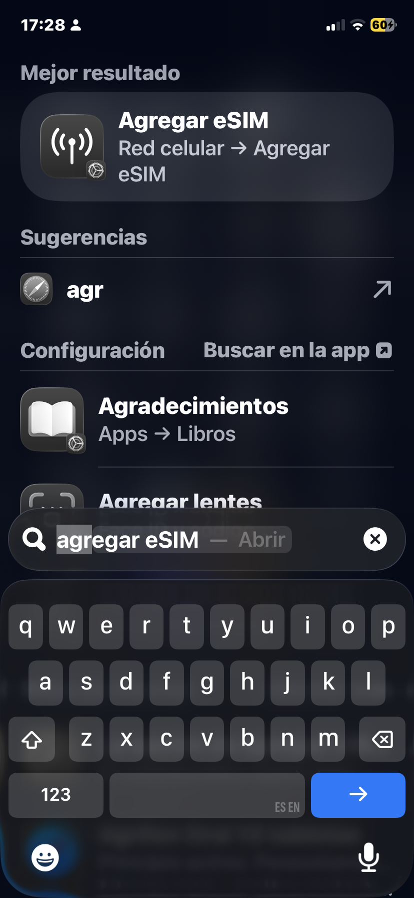 📚 Para agregar una eSIM a un iPhone, ve a Ajustes > Datos móviles > Configurar datos móviles o Añadir eSIM y sigue las instrucciones. Puedes transferir una eSIM desde otro iPhone cercano, escanear un código QR que te envíe tu operador o ingresar los datos manualmente.
